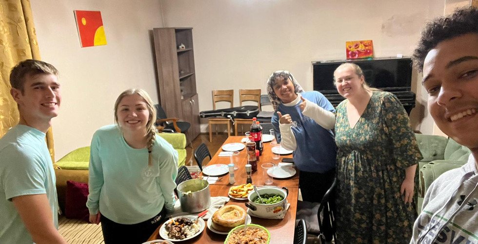 We also had a lot of fun putting on a Thanksgiving celebration for the students at our talking club. We introduced them to mac and cheese and cobbler. We were going to make cherry cobbler but the only canned fruits we could find were mangos and pineapple so we made mango cobbler instead. We taught them the Cotton Eye Joe and explained why we celebrate Thanksgiving. Speaking of Thanksgiving, we got to celebrate and have dinner as a team which was a lot of fun. We were unable to find a turkey so we ended up having kebab instead haha. But outside of ministry and the holidays, we've made sure to have a lot of fun as well. We've enjoyed exploring the city and hanging out with each other and the students.